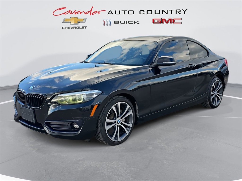 Welcome to Cavender Auto Country Chevy Buick GMC, a Cavender Auto Family dealership. This vehicle is located at 1700 IH-10 East, Weimar, TX 78962. Here at Cavender we build relationships based on trust and integrity to exceed your expectations in your ownership experience. Quite simply, we strive to Make Confidence Happen! So stop by and allow us to serve your automotive needs; we would love to meet you.Black Sapphire Metallic 2018 BMW 2 Series 230i Premium RWD 2.0L I4 16V TwinPower Turbo 8-Speed Automatic SportFeatures: Premium Package (Advanced Real-Time Traffic Information, Heated Front Seats, Heated Steering Wheel, Instrument Cluster w/Extended Contents, Navigation System, and Remote Services), Premium Package Enhanced (Ambient Lighting, Auto-Dimming Interior & Driver Exterior Mirrors, Auto-Dimming Rear-View Mirror, Comfort Access Keyless Entry, Lumbar Support, Moonroof, SiriusXM Satellite Radio, and Universal Garage-Door Opener), 4-Wheel Disc Brakes, 6 Speakers, ABS brakes, Air Conditioning, Alloy wheels, AM/FM radio, Automatic temperature control, Black High-Gloss Trim w/Coral Red Matte Accent, Brake assist, Bumpers: body-color, CD player, Dakota Leather Upholstery, Delay-off headlights, Driver door bin, Driver vanity mirror, Dual front impact airbags, Dual front side impact airbags, Electronic Stability Control, Emergency communication system: BMW Assist eCall, Exterior Parking Camera Rear, Four wheel independent suspension, Front anti-roll bar, Front Bucket Seats, Front Center Armrest, Front dual zone A/C, Front fog lights, Front reading lights, Front Sport Seats, Fully automatic headlights, Hands-Free Bluetooth & USB Audio Connection, Heated door mirrors, Hi-Fi Sound System, Illuminated entry, In-Dash CD Player, Knee airbag, Leather Shift Knob, Low tire pressure warning, Occupant sensing airbag, Outside temperature display, Overhead airbag, Panic alarm, Passenger door bin, Passenger vanity mirror, Power door mirrors, Power driver seat, Power Front Seats, Power passenger seat, Power steering, Power windows, Radio data system, Radio: AM/FM Audio System, Rain sensing wipers, Rear anti-roll bar, Rear window defroster, Remote keyless entry, Security system, SensaTec Upholstery, Speed control, Speed-sensing steering, Speed-Sensitive Wipers, Split folding rear seat, Sport steering wheel, Steering wheel mounted audio controls, Tachometer, Telescoping steering wheel, Tilt steering wheel, Traction control, Trip computer, Turn signal indicator mirrors, Variable Sport Steering, Variably intermittent wipers, Wheels: 17 x 7.5 Bi-Color (Style 725), and Wheels: 18 x 7.5 Light Alloy (Style 384)