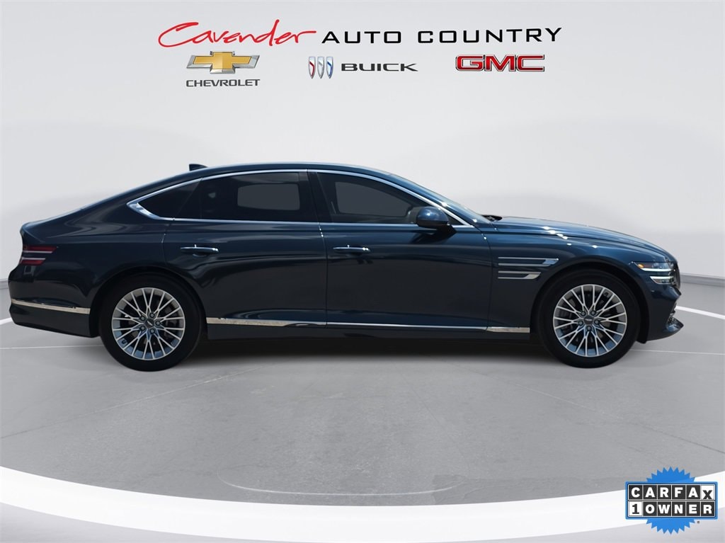 Welcome to Cavender Auto Country Chevy Buick GMC, a Cavender Auto Family dealership. This vehicle is located at 1700 IH-10 East, Weimar, TX 78962. Here at Cavender we build relationships based on trust and integrity to exceed your expectations in your ownership experience. Quite simply, we strive to Make Confidence Happen! So stop by and allow us to serve your automotive needs; we would love to meet you.Tasman Blue 2023 Genesis G80 2.5T RWD I4 8-Speed AutomaticFeatures: Option Group 01, 12 Speakers, 4-Wheel Disc Brakes, ABS brakes, Air Conditioning, Alloy wheels, AM/FM radio: SiriusXM, Android Auto & Apple CarPlay, Anti-whiplash front head restraints, Auto High-beam Headlights, Auto tilt-away steering wheel, Auto-dimming door mirrors, Auto-dimming Rear-View mirror, Automatic temperature control, Bumpers: body-color, Compass, Delay-off headlights, Driver door bin, Driver vanity mirror, Dual front impact airbags, Dual front side impact airbags, Electronic Stability Control, Emergency communication system: Genesis Connected Services, Exterior Parking Camera Rear, Four wheel independent suspension, Front anti-roll bar, Front Bucket Seats, Front Center Armrest, Front dual zone A/C, Front reading lights, Fully automatic headlights, Garage door transmitter: HomeLink, Heated door mirrors, Heated Front Bucket Seats, Heated front seats, Illuminated entry, Knee airbag, Leather steering wheel, Leatherette Seating Surfaces, Low tire pressure warning, Memory seat, Navigation System, Occupant sensing airbag, Outside temperature display, Overhead airbag, Overhead console, Panic alarm, Passenger door bin, Passenger vanity mirror, Power door mirrors, Power driver seat, Power passenger seat, Power steering, Power windows, Radio data system, Radio: AM/FM/HD/SiriusXM Audio System, Rain sensing wipers, Rear anti-roll bar, Rear reading lights, Rear seat center armrest, Rear side impact airbag, Rear window defroster, Remote keyless entry, Reversible Cargo Tray, Security system, Speed control, Speed-sensing steering, Speed-Sensitive Wipers, Steering wheel memory, Steering wheel mounted audio controls, Tachometer, Telescoping steering wheel, Tilt steering wheel, Traction control, Trip computer, Turn signal indicator mirrors, Variably intermittent wipers, and Wheels: 18x8.0J Alloy.Odometer is 28496 miles below market average! Clean CARFAX. CARFAX One-Owner.